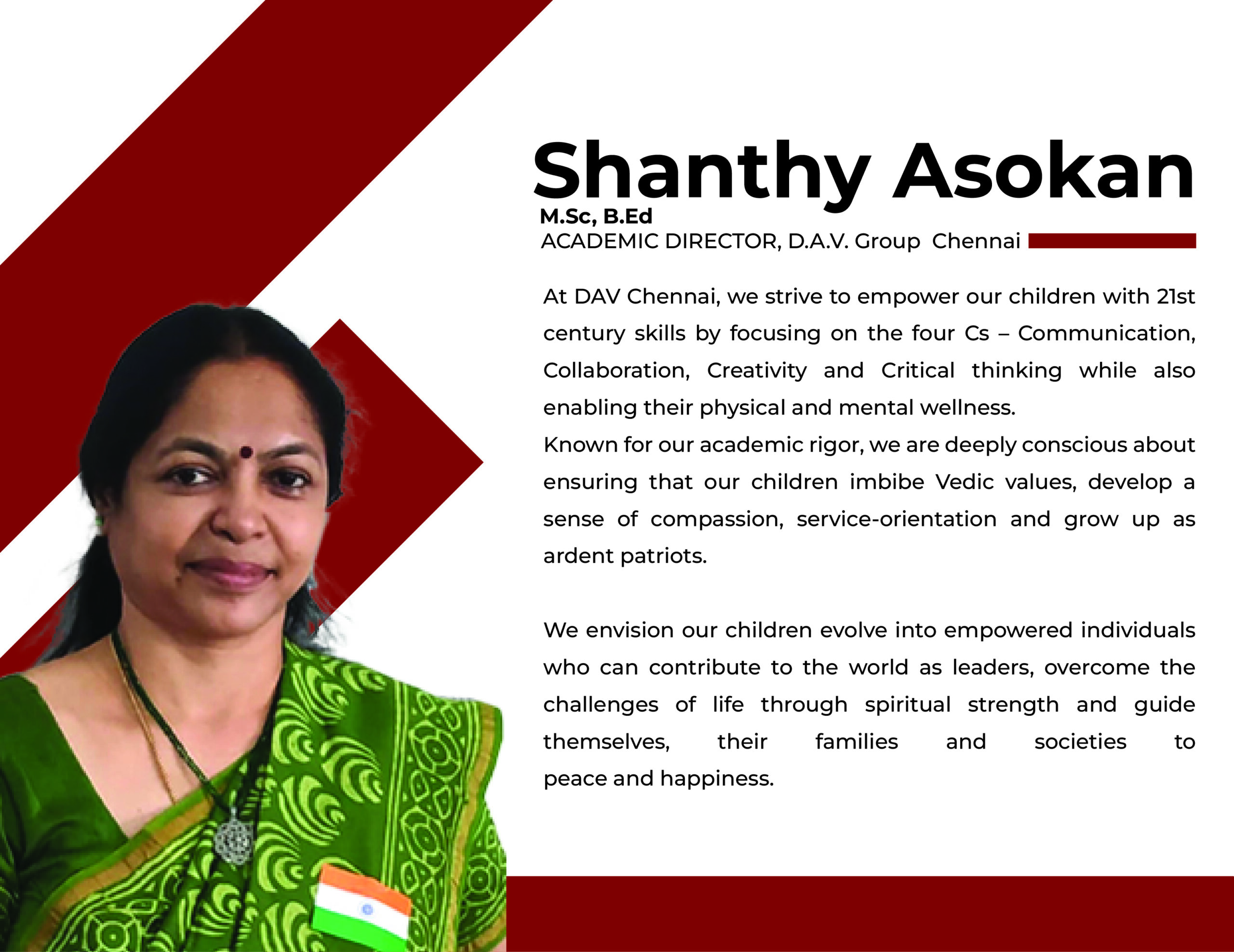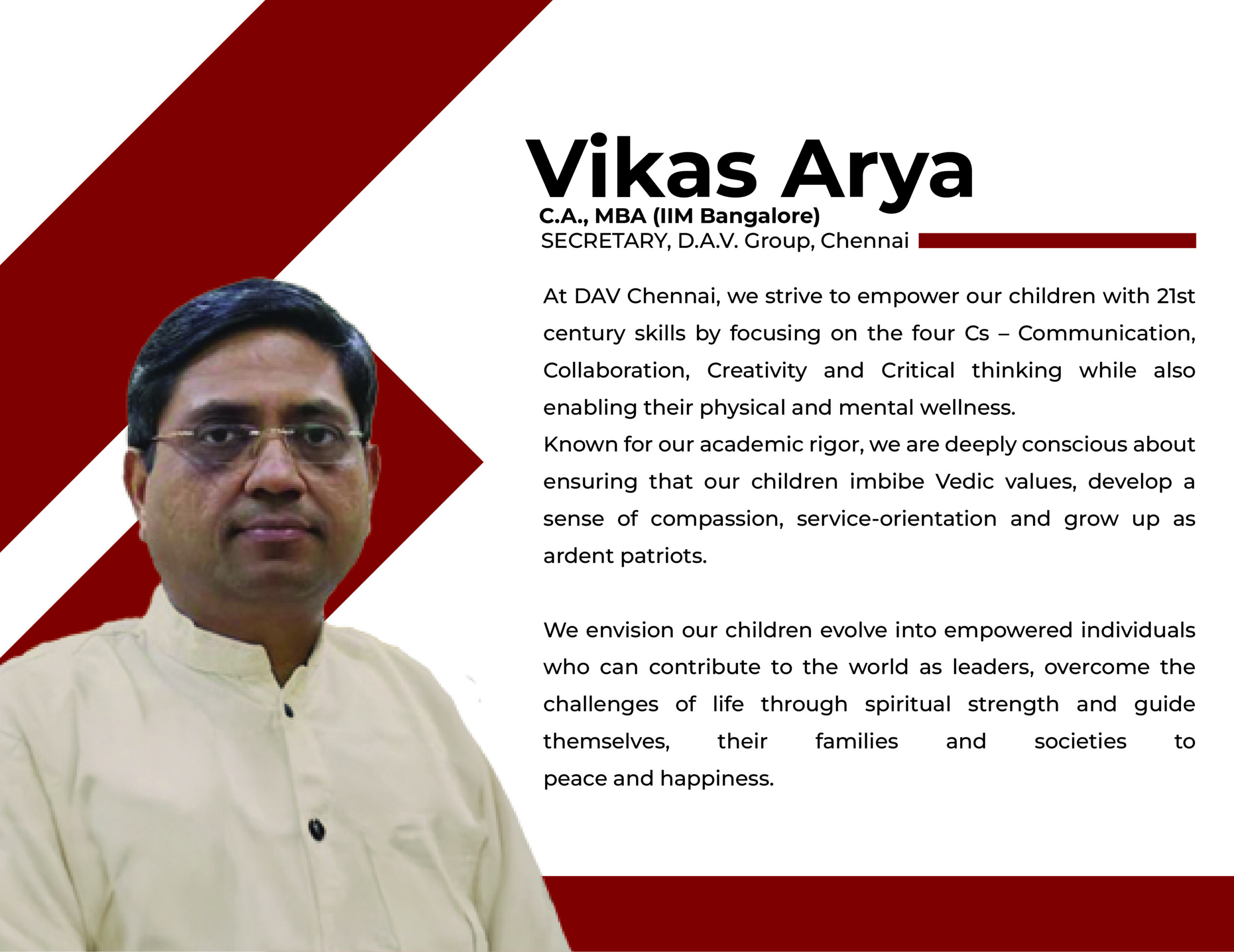 Since 1970, D.A.V. Group of Chennai (under the aegis of the Arya Samaj Seva Foundation (ASSF) has been serving society by providing affordable high-quality education rooted in Vedic values, while remaining relevant to the times. Today it serves over 47,000 students across 16 Owned & Managed schools and a growing number of Academic Associations.